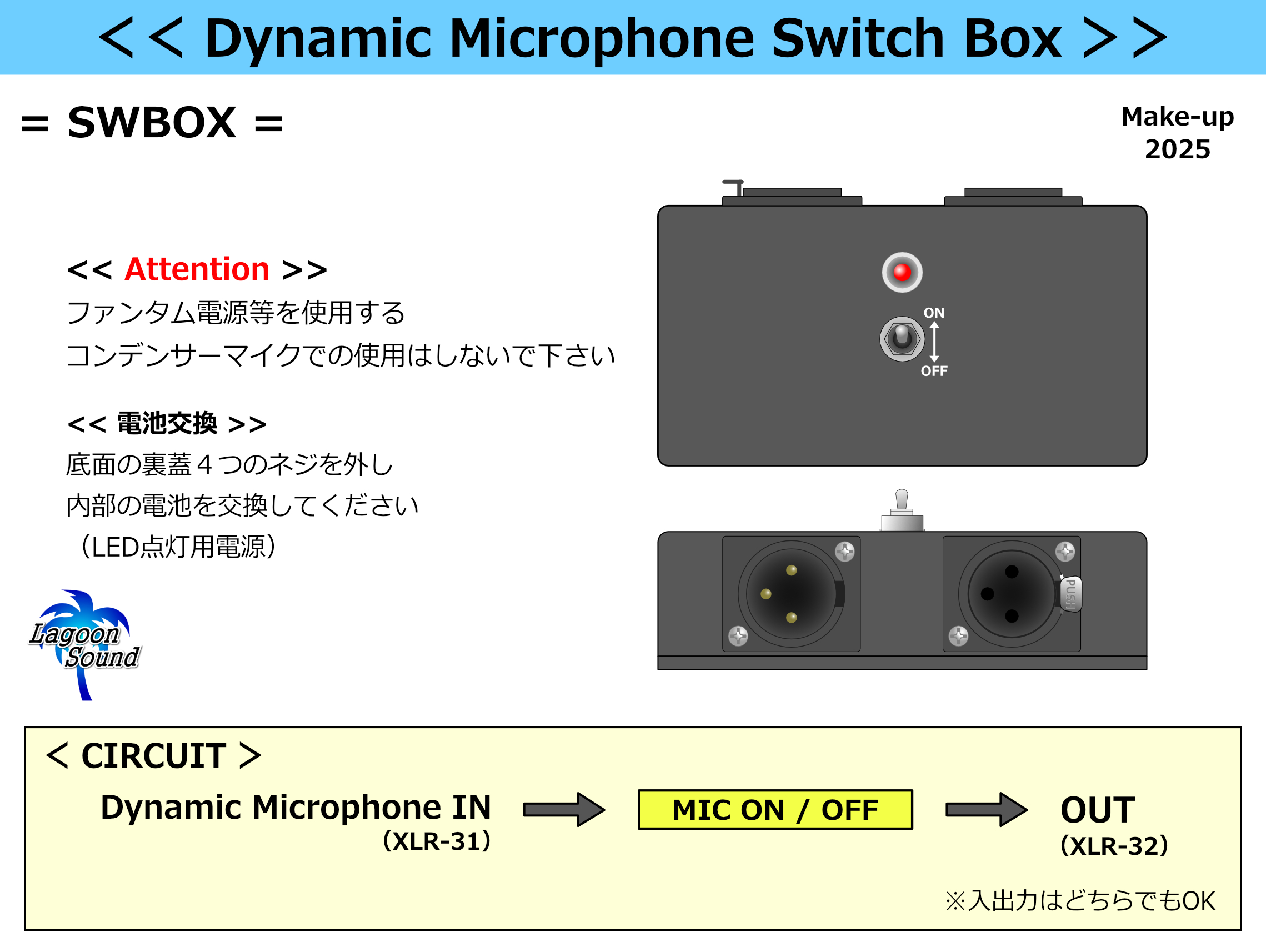 IN : XLR-31 ⇒ SWITCH(ON / OFF) ⇒ OUT : XLR-32